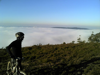 Em Covelo de Paivo tinha início a subida que, à partida, seria a mais dura do dia. Conhecendo a Serra de S. Macário de outras andanças, sabia que as inclinações poderiam fazer mossa... primeiro em estrada, depois em trilhos, subimos dos 300 aos 900m de altitude em cerca de 7km. Perto do final da subida, mais uma surpresa dos ecobikers... desta vez com letria!!! uiiii!